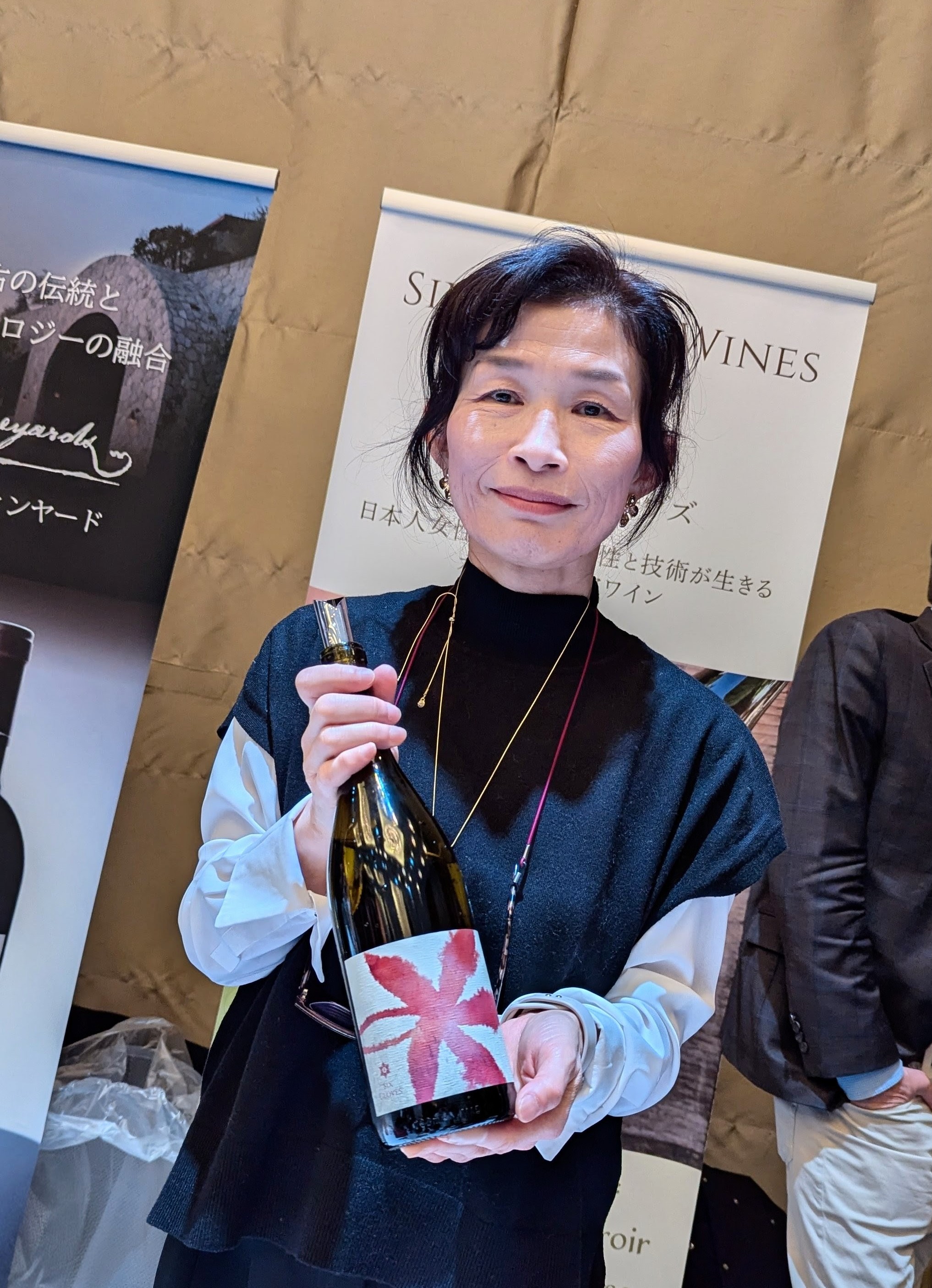 園枝さんは近年は毎年12月に帰国されています。昨年は11月下旬に帰国され12月下旬にカリフォルニアへ戻られました。この時はお会いできませんでした。そして今年は2月下旬に帰国され、博多や大阪でイベントに参加され、3月の東京でのカリフォルニア協会のイベントに参加されました。3月のカリフォルニア協会のイベントでお会いできました。新ヴィンテージの2024年は3つのワインを造り上げました。