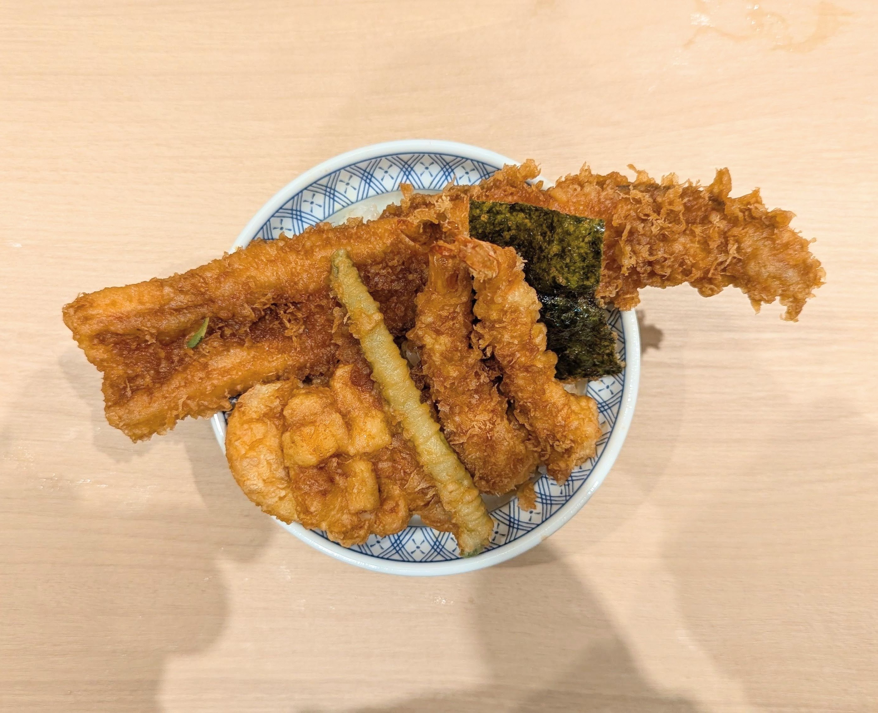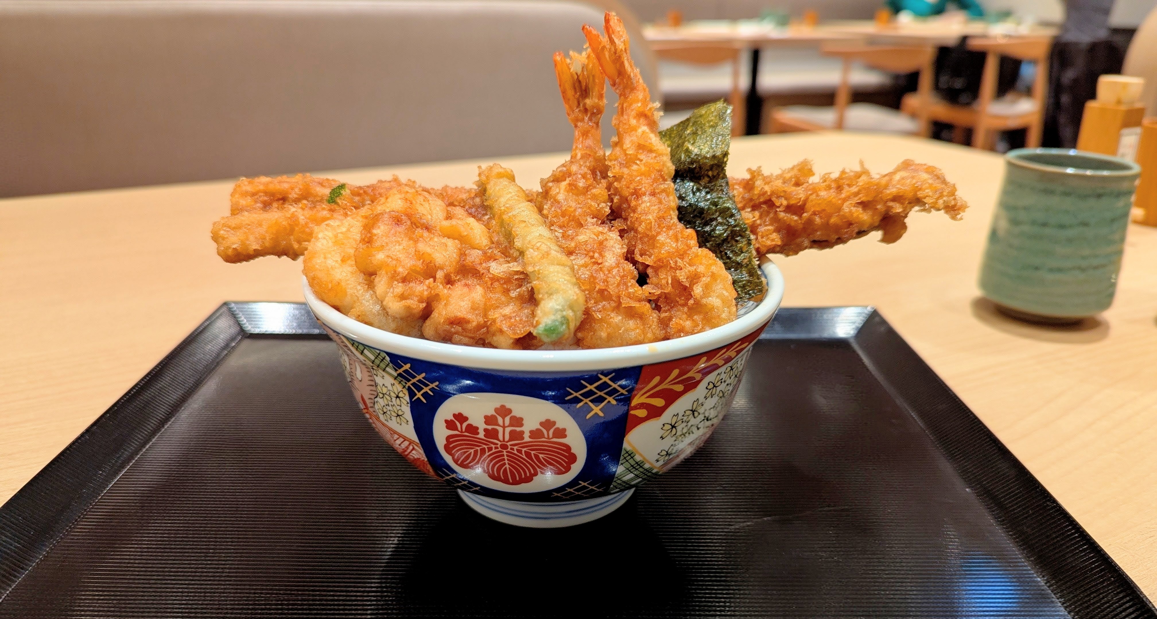 うどんと丼めしのセットが中心ですが、江戸前天丼が数量限定で提供されているとのことで、稲庭うどんと江戸前天丼を単品で注文しました。