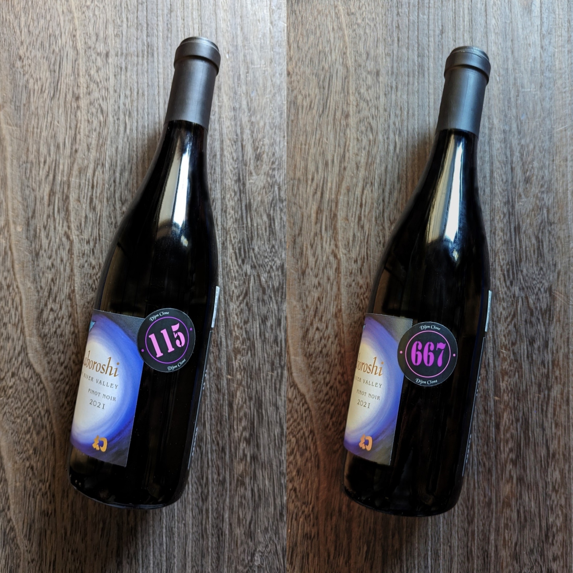 マボロシのピノ・ノワールは初リリース以来ディジョンクローン115と667のブレンドで醸造されています。ですが、今年3月に入荷した、最新ヴィンテージ2021年のピノ・ノワールはクローン115だけで造られました。このことに関して私市さんは口を閉ざしていましたが(苦笑)、やはりクローン667も造っておりました。クローン667だけのピノ・ノワールが入荷しました。