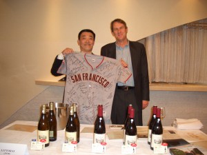 前日の輸入元の試飲会にテッドさんが参加しました。いくつかリトライについて質問した後いつもの行動へ(笑)。サインくださいって言ったら不思議がっていましたが、ジャージ見て苦笑。ジャイアンツのファンですかと訊ねたら、オフコースと苦笑。でも息子さんがジャイアンツの大ファンとのことです(笑)。ジャージには友人もたくさんいたので、笑顔でサインしてくださいました(喜)。