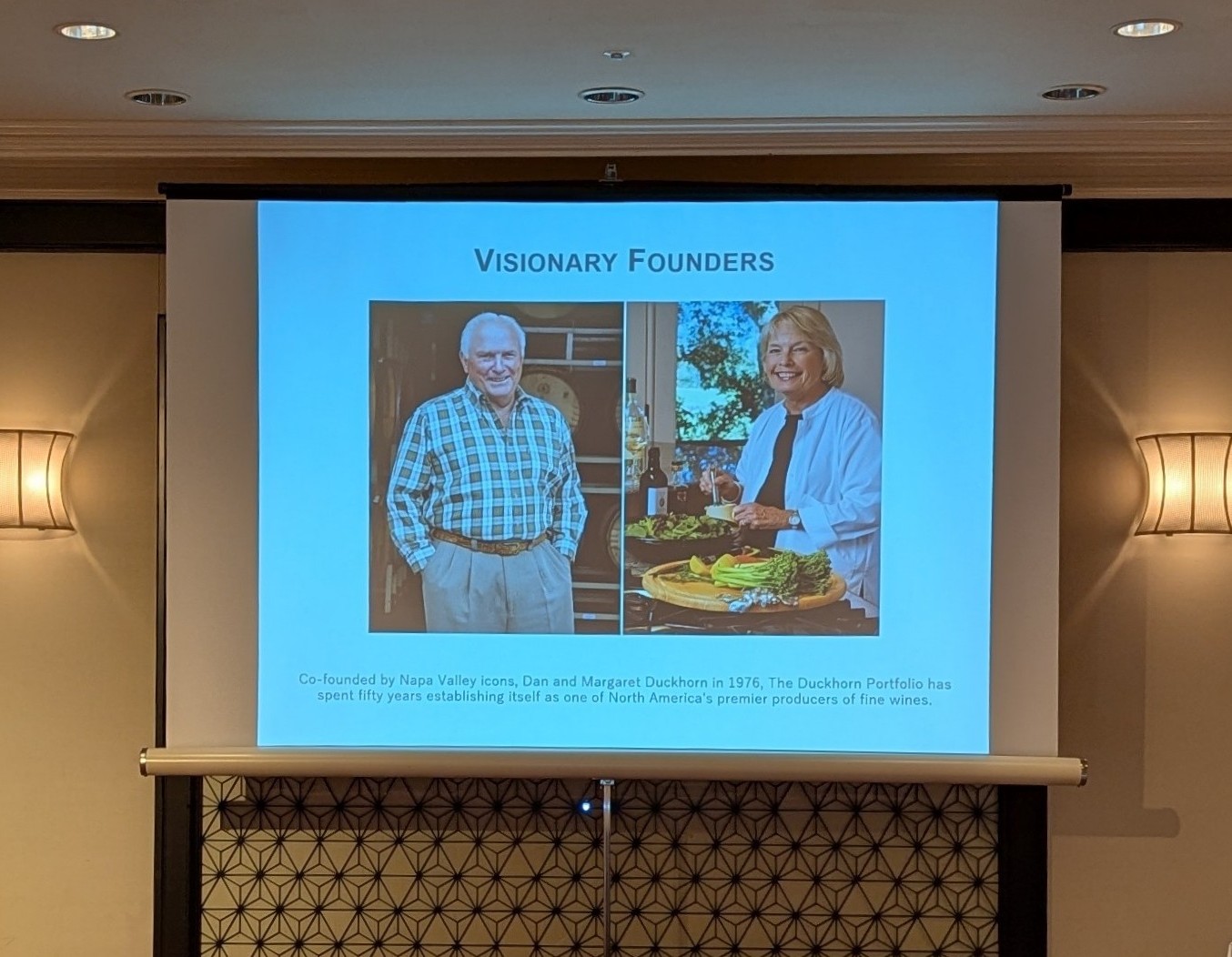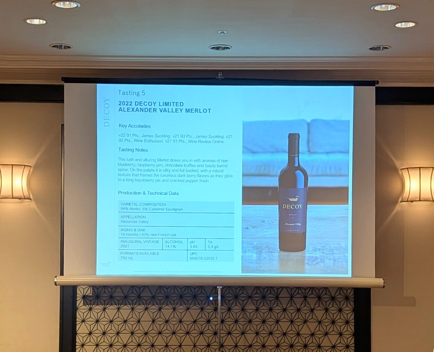 アジア太平洋営業部長のカール・コヴェネー氏からダックホーン・ヴィンヤーズの歴史と現在のポートフォリオについてお話がありました。そしてデイナ・エパーソン女史からはデコイ・リミテッドのワインのお話がありました。