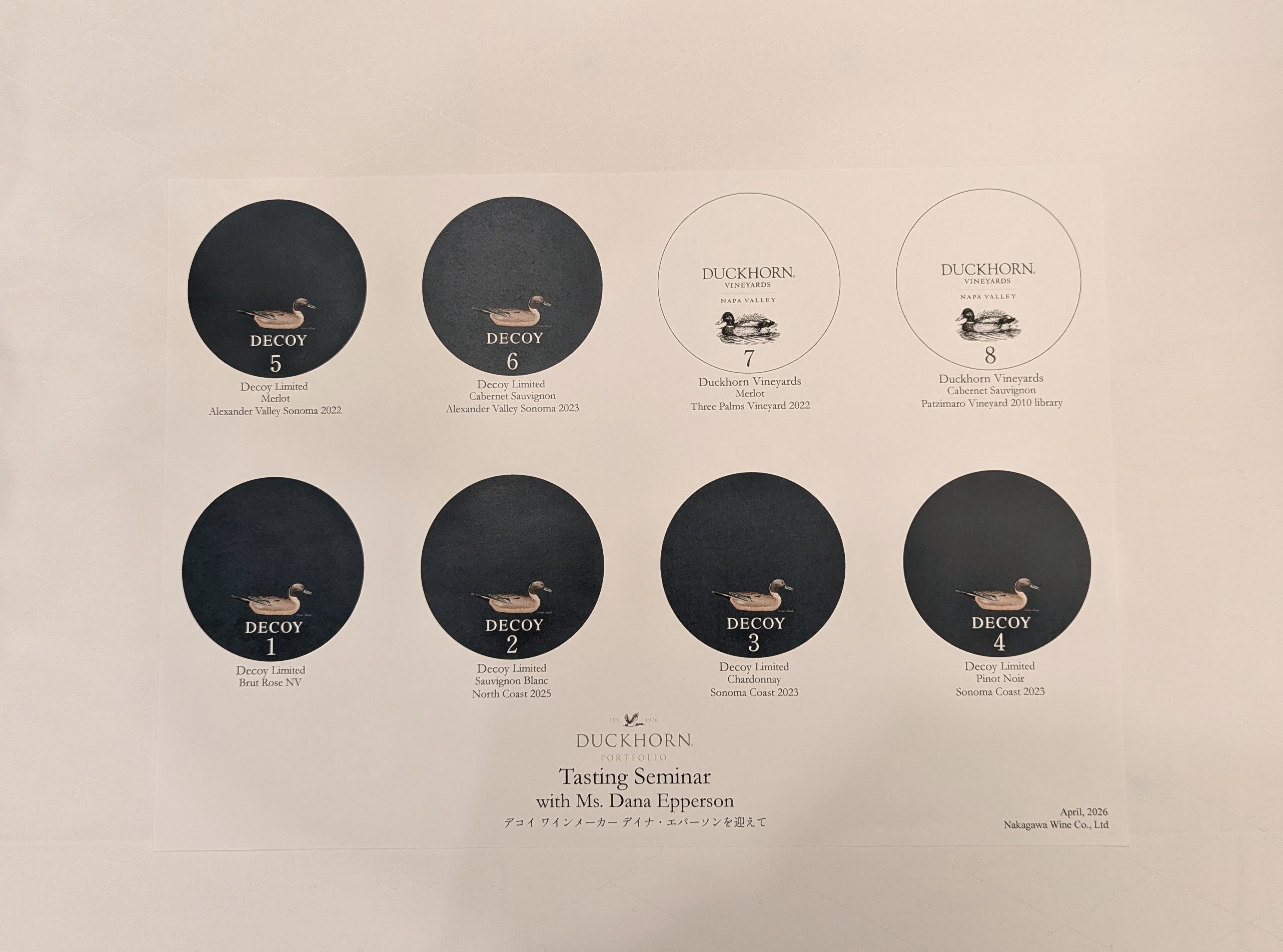 ご存じナパ・ヴァレーにおけるメルロー造りのパイオニアである「ダックホーン・ヴィンヤーズ」。そのダックホーン・ヴィンヤーズの人気ブランドのデコイでエグゼクティブワインメーカーを務めるデイナ・エパーソン女史が初来日しました。輸入元主催のマスタークラスに参加しました。