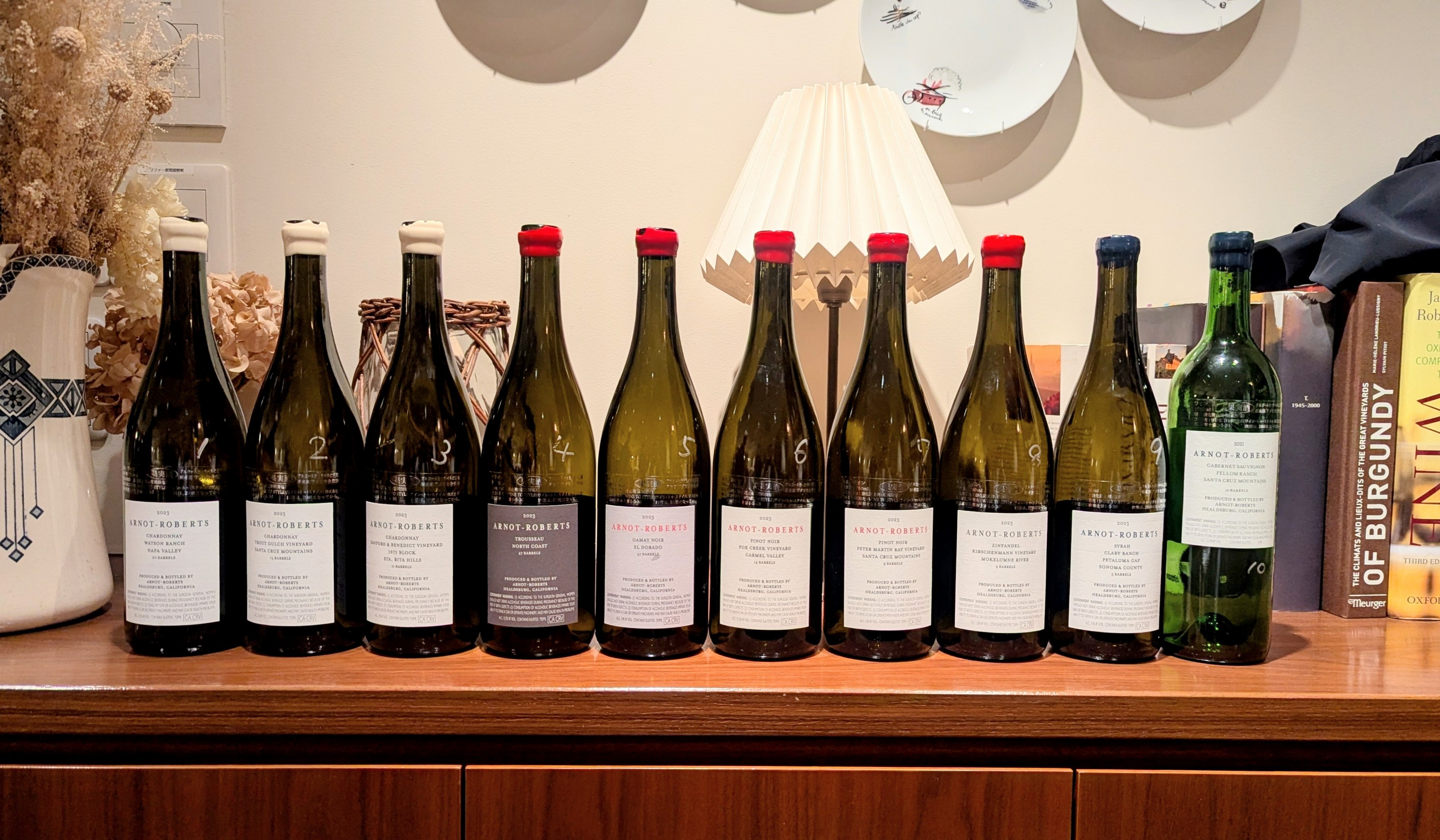別の機会に個々に詳しく説明しますので、ここでは簡単な説明で。新ヴィンテージの2023年です。2011年以降で最も冷涼な年となりました。まずはシャルドネが3アイテムです。ナパ・ヴァレーの最南端に位置するワトソン・ランチ・ヴィンヤードです。サン・パブロ湾からの冷たい強い風がこの畑を吹き抜けます。表土は粘土質ですが下層土は石灰岩土壌という、ノース・コーストでは珍しい土壌です。オーガニック栽培で、クローンは4です。全房プレス。マロラクティック発酵。しっかりとしたテクスチャーを持ちますが、心地良い酸が重さを感じさせません。どこか塩気を感じさせます。サンフランシスコの南の、サンタ・クルーズ・マウンテンの最南端に位置するトラウト・ガルチ・ヴィンヤードです。海からは約6kmの、標高180mに位置します。葡萄にとっては成熟限界の極限地点と言われています。ゆえに収穫は10月中旬までに及びます。土壌は細粒の砂質ロームです。オーガニック栽培で、クローンは古いオールド・ウェンテです。まさに冷涼さを表す風味です。高い酸。ドライハーブのニュアンスが印象的です。サンタ・バーバラ・カウンティの銘醸畑のご存じサンフォード&ベネディクト・ヴィンヤードです。1971年リチャード・サンフォードとマイケル・ベネディクトによって植樹された、サンタ・バーバラ最古の畑です。有名な珪藻土に自根で直接植えられています。クローンはウェンテです。北のシャルドネと比べると若干ふくよかな旨味を感じますが、やはり重くは感じません。本拠地ヒールズバーグとは距離があるため、アルノー・ロバーツはサンタ・バーバラはほとんどチェックしていなかったようですが、ご縁に恵まれ、この偉大な畑の葡萄を入手することができました。しかも一番古い区画の葡萄です。2018年ヴィンテージから生産しています。