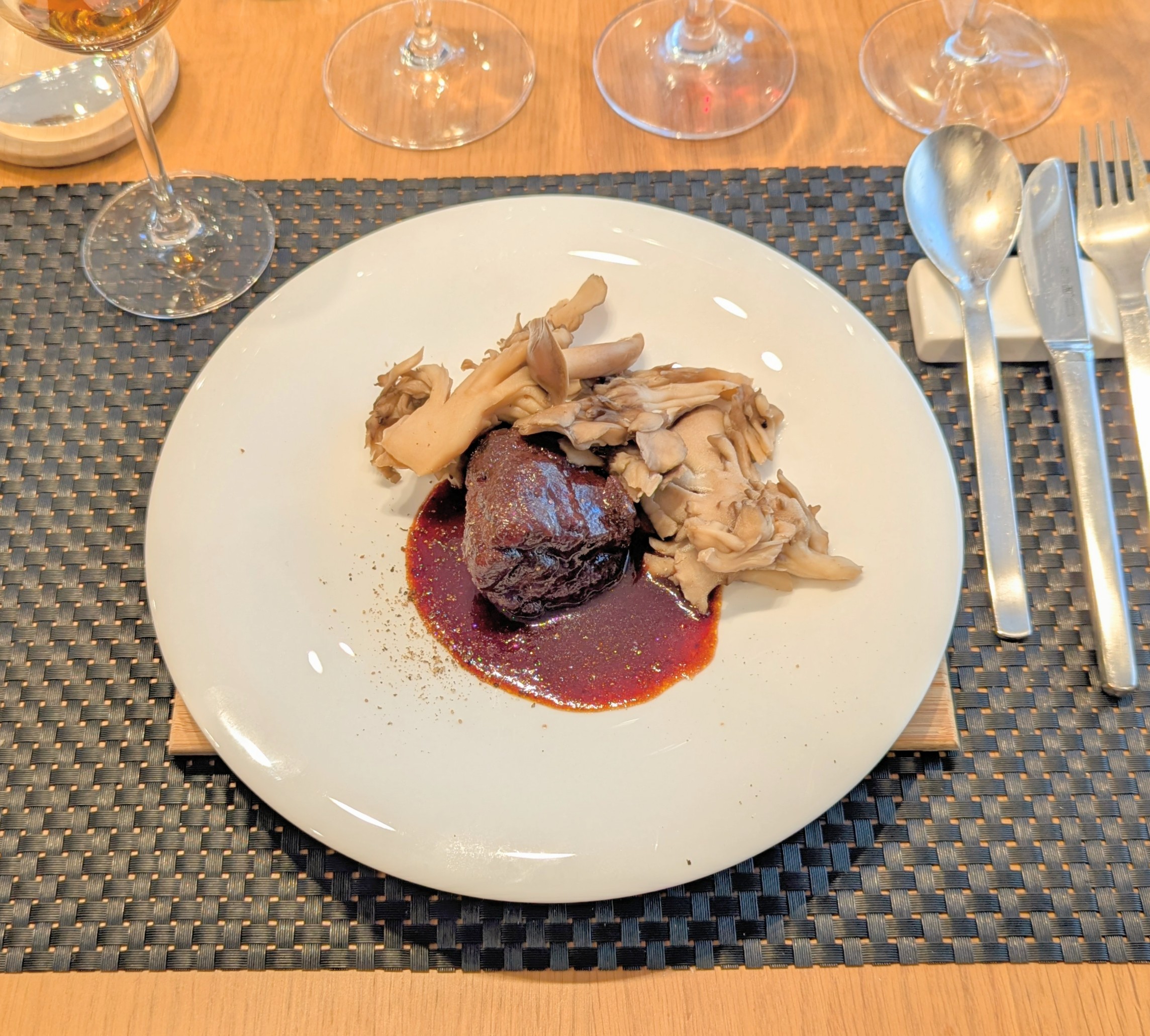 埼玉産の国産牛ほほ肉です。なんと4日間煮込んだそうです。ホロホロです。まいたけ(新潟産)やしめじ(京都産)も美味しいです。