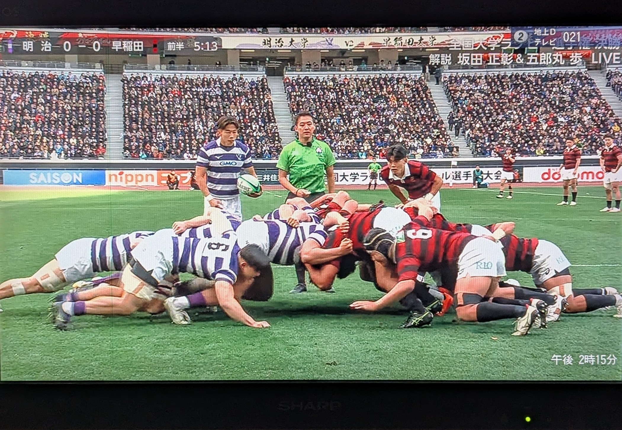 明治が7大会振り14度目の優勝です。早稲田とは6大会振りの11度目の決勝戦でした。明治が対抗戦でも早稲田に勝って大学選手権でも早稲田に勝ったのは約30年振り(1996年シーズン)とか。おめでとうございます。