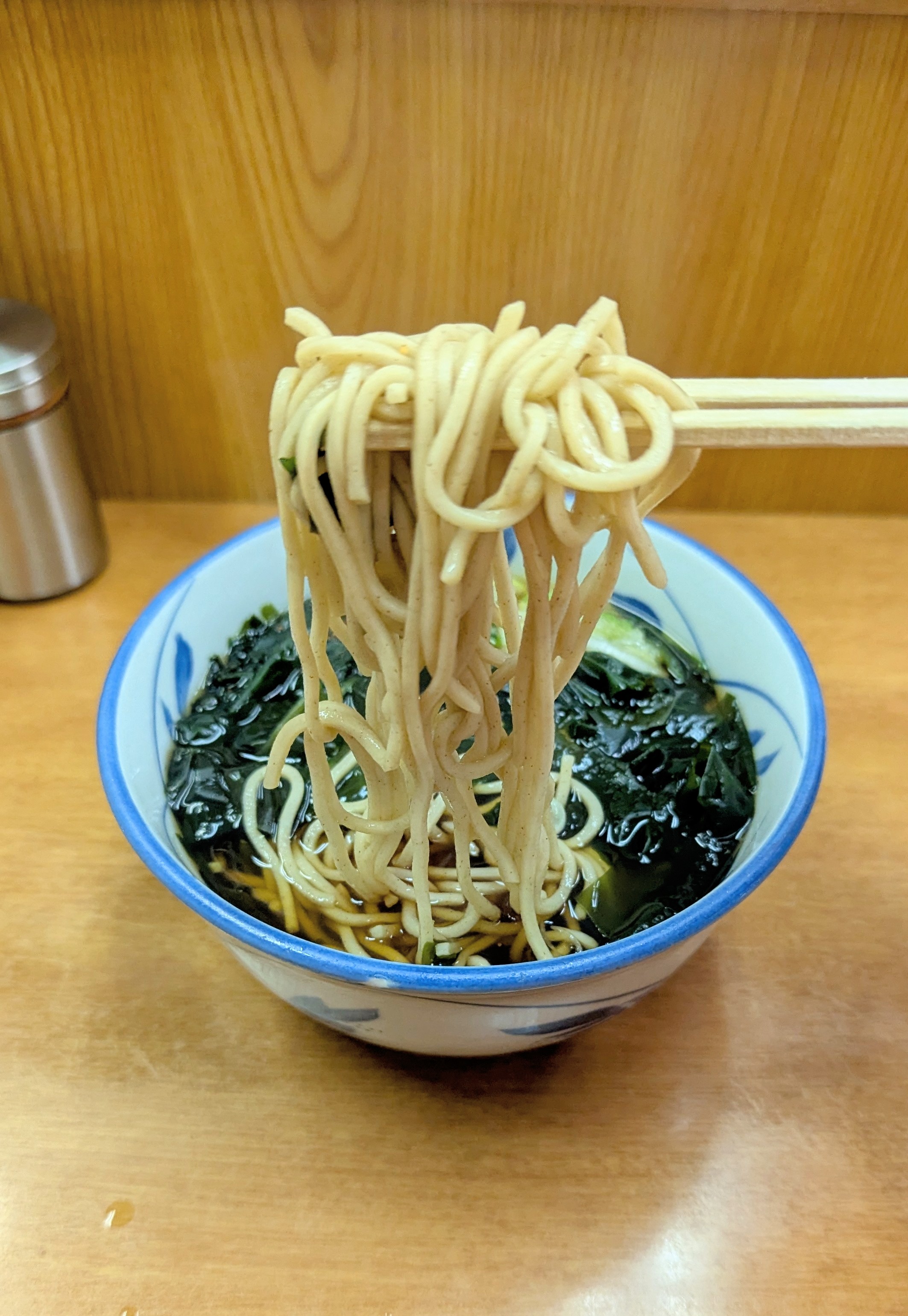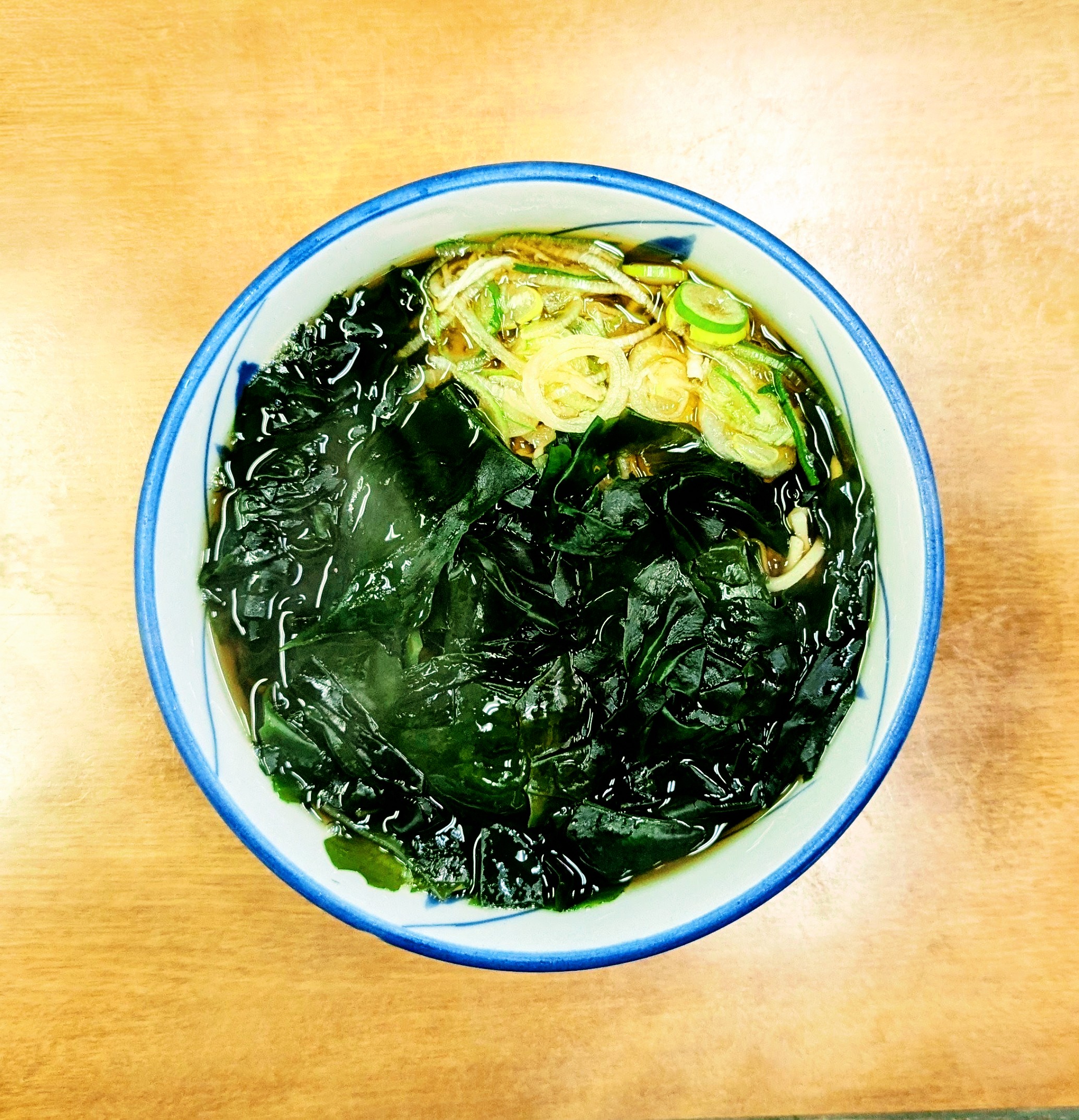 ワカメいっぱいのわかめそばです。人気のそばなので早く売り切れになることも。