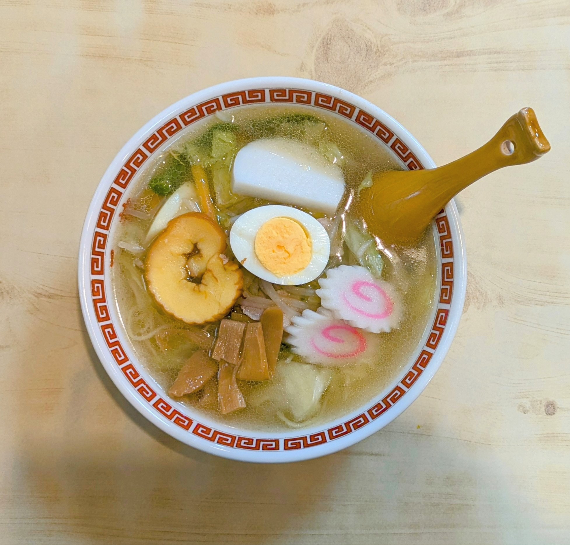 蕎麦屋が作る中華五目そばです。伊達巻や蒲鉾はお正月にしか食べないですよね(苦笑)。なるとがあると日本の中華そばって気がします(苦笑)。ベースはタンメン味(塩)です。まいう~です。