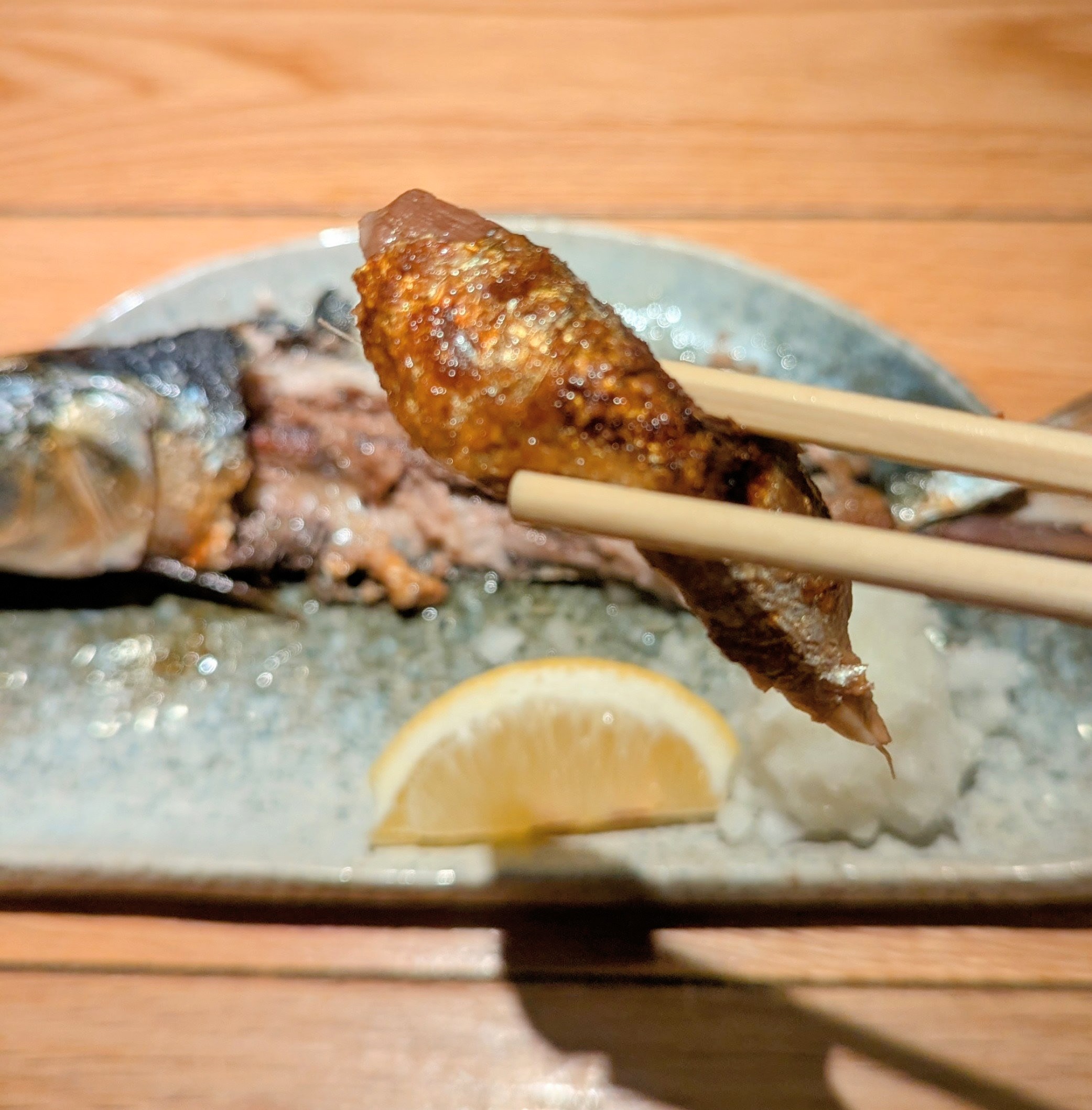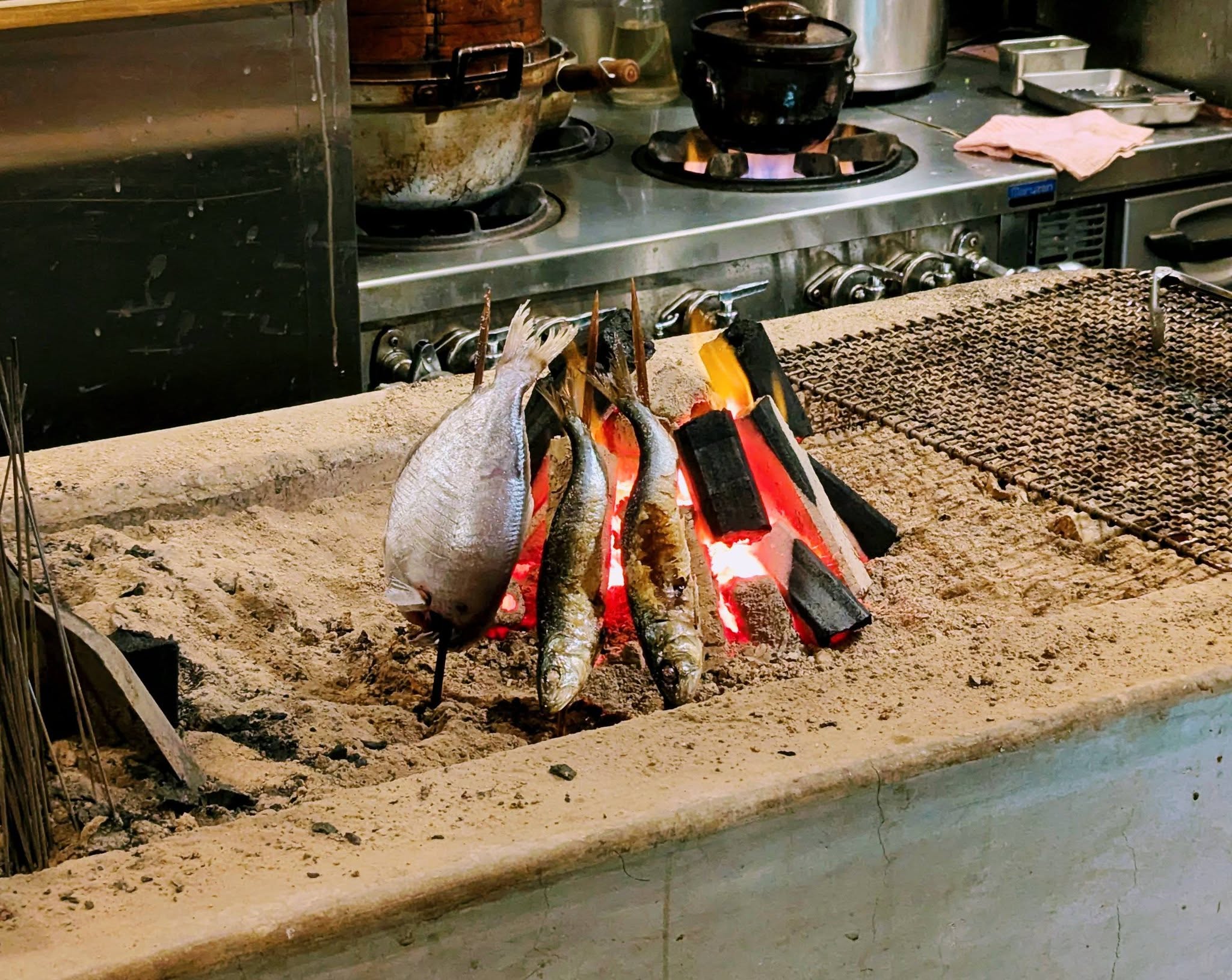 遠火でゆっくりと焼き上げます。日本酒がすすむくんです。