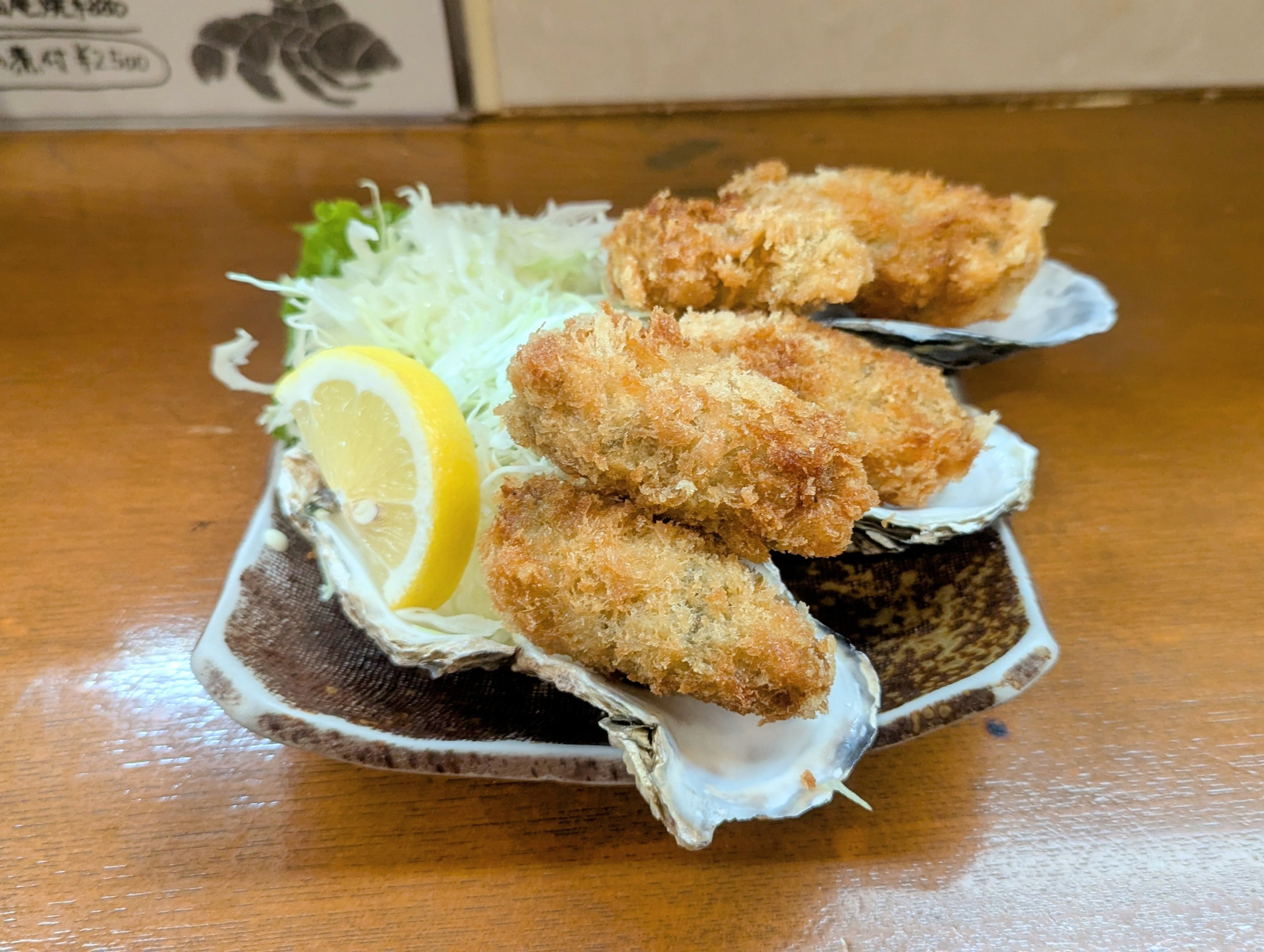 牡蠣フライはからし醤油とからしソースで。タルタルソースも欲しいけど(苦笑)。