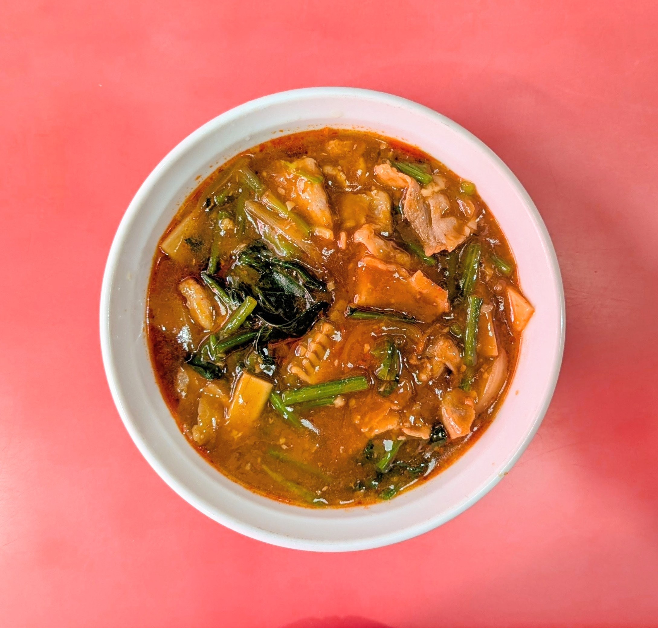「豚肉 ほうれん草 辛あんかけラーメン」